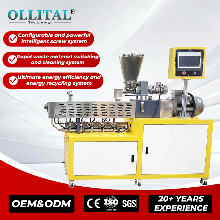 * Twin Screw Extruder: Color masterbatch, modified plastics, degradable materials, hot melt adhesives, reactive extrusion, high-filled composite materials